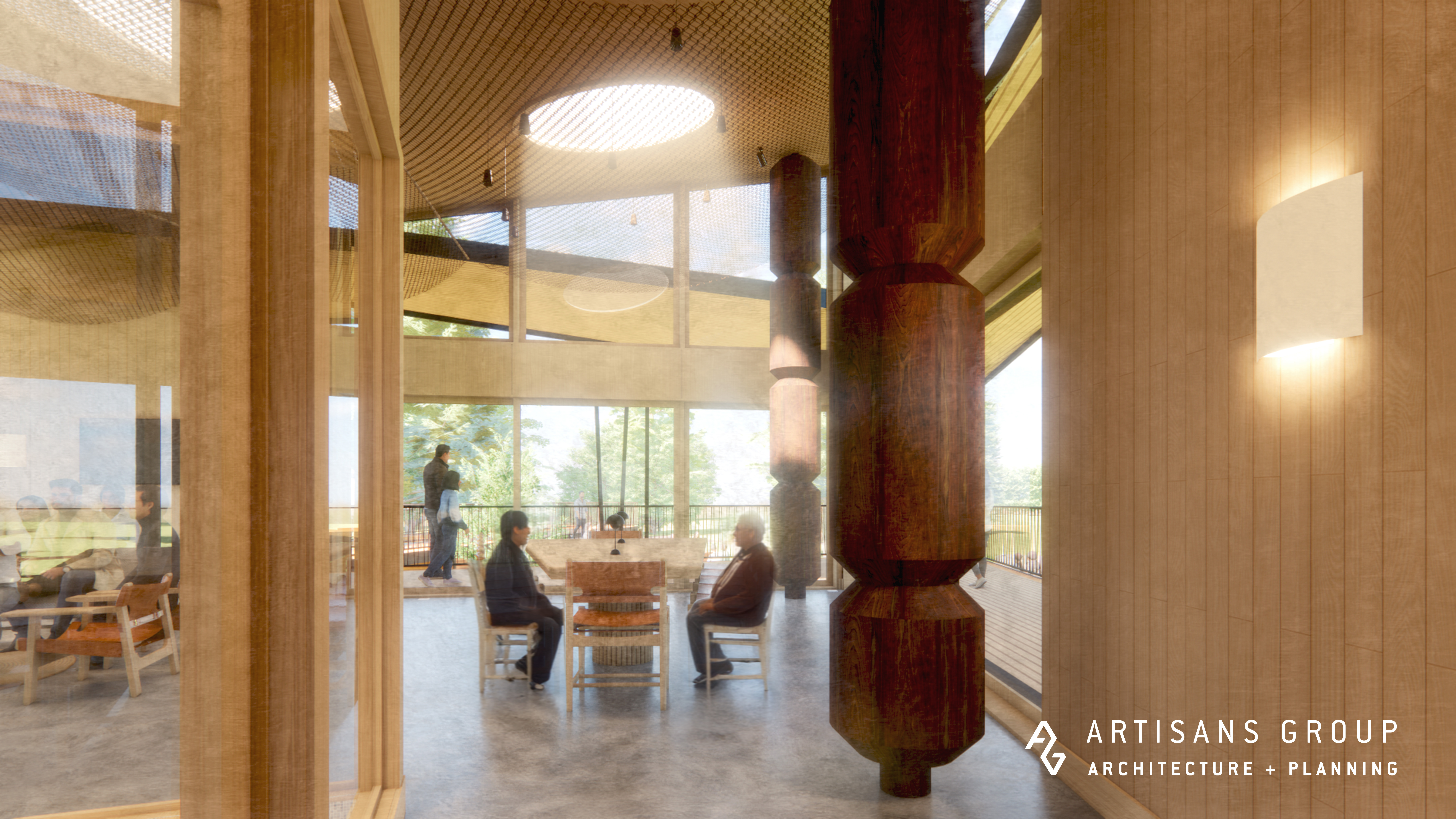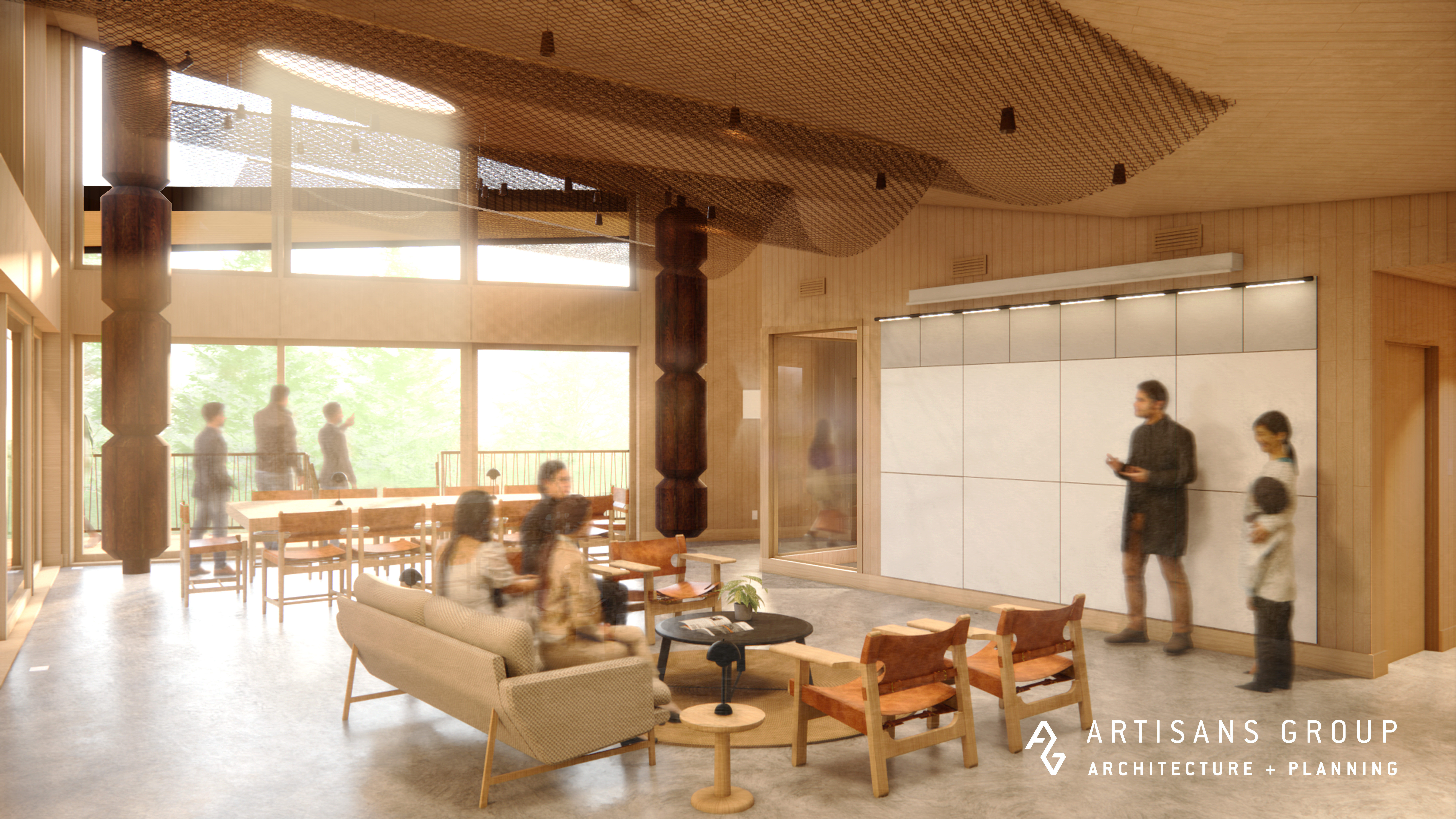 Our design is inspired by the traditional longhouse but folds upward, giving the structure a modern twist and capturing the evolving American Indian community culture it represents. It integrates its natural surroundings by capturing light from the east and views of expansive outdoor community spaces.